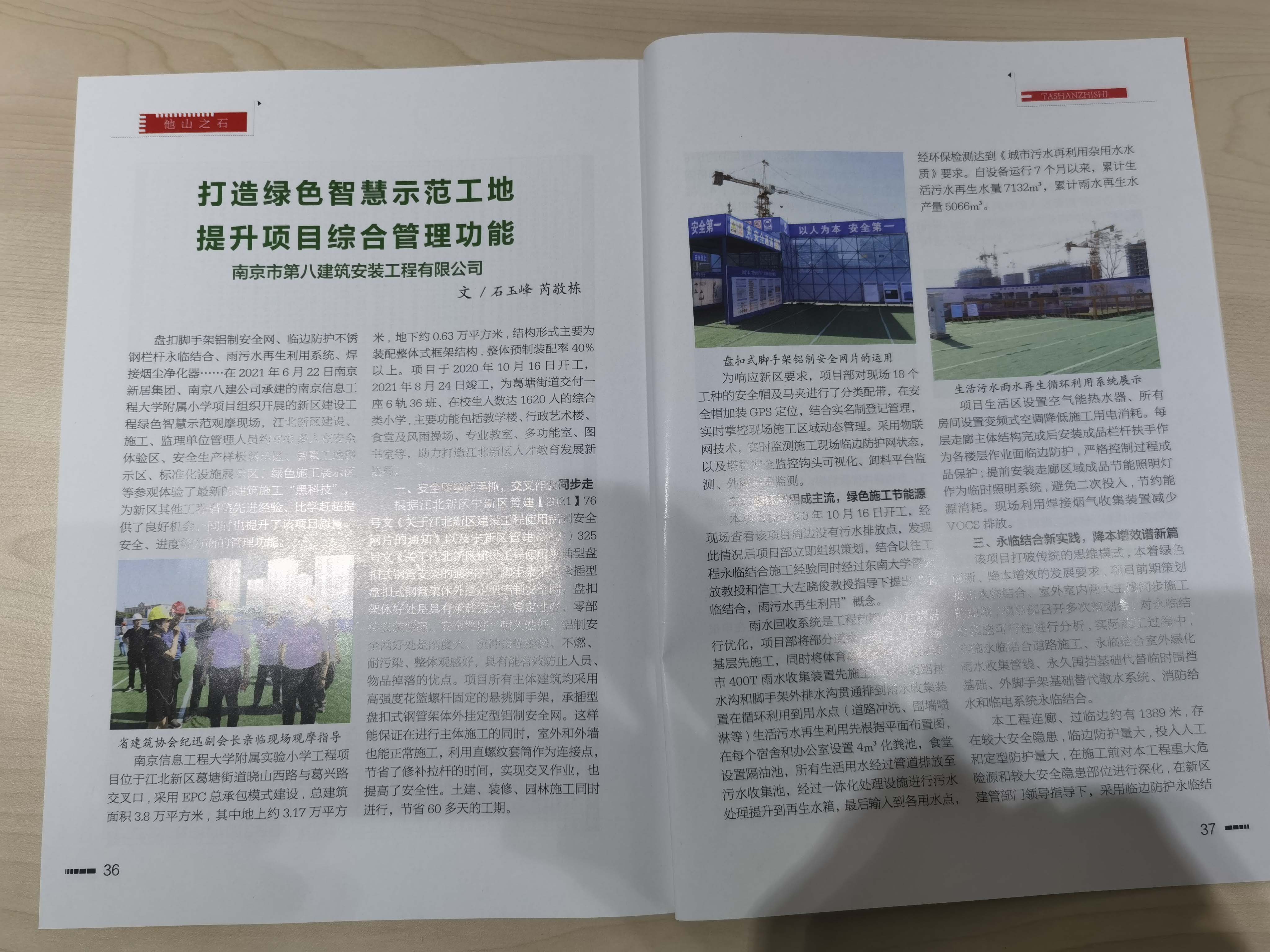 2022年9月《南京建筑業(yè)》第3期刊登了芮敬棟、石玉峰所著《打造綠色智慧示范工地,提升項(xiàng)目綜合管理功能》一文 -
