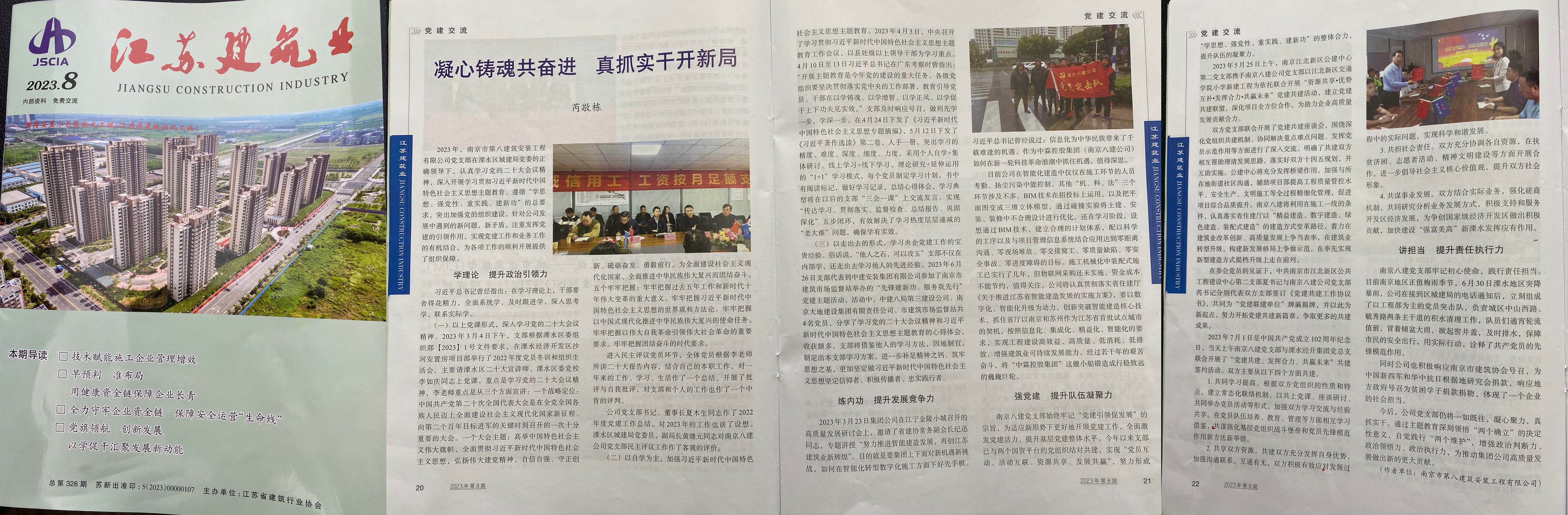 2024年9月,南京建筑業(yè)協(xié)會(huì)主辦的《南京建筑業(yè)》(第105期)刊登了芮敬棟同志《深化黨紀(jì)學(xué)習(xí) 筑牢紀(jì)律防線——南京八建黨支部黨紀(jì)教育活動(dòng)紀(jì)實(shí)》一文 -